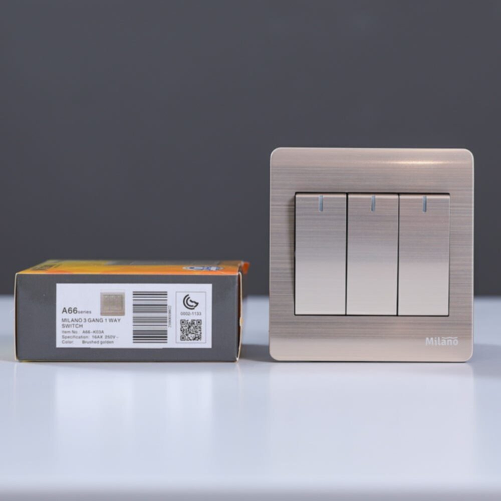 MILANO | 16A 3 Gang 1Way Switch Gd | 210800100022