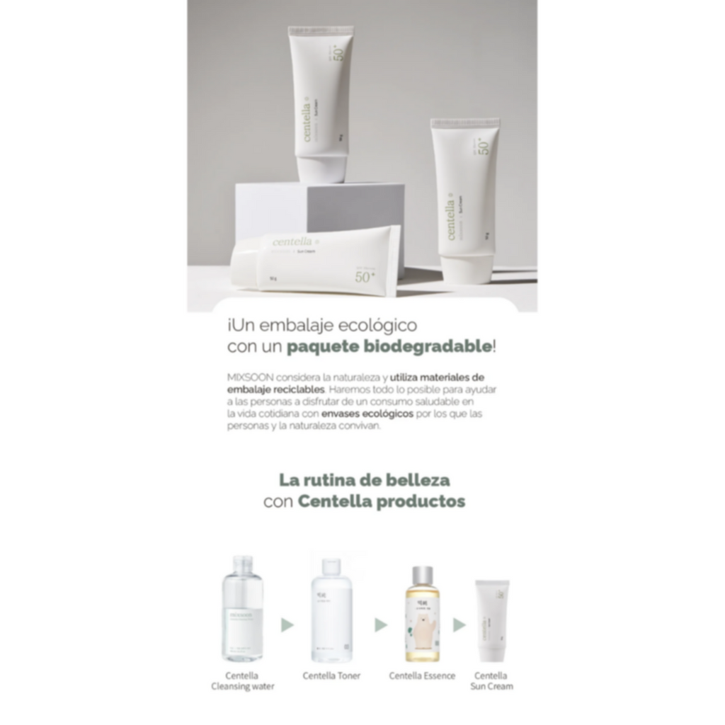 â—† MIXSOON Centella Sun Cream with SPF 50+ with UV filter protects the skin from harmful sun rays. The light texture of the sunscreen absorbs quickly. The cream provides protection to the skin throughout the year and helps prevent aging.