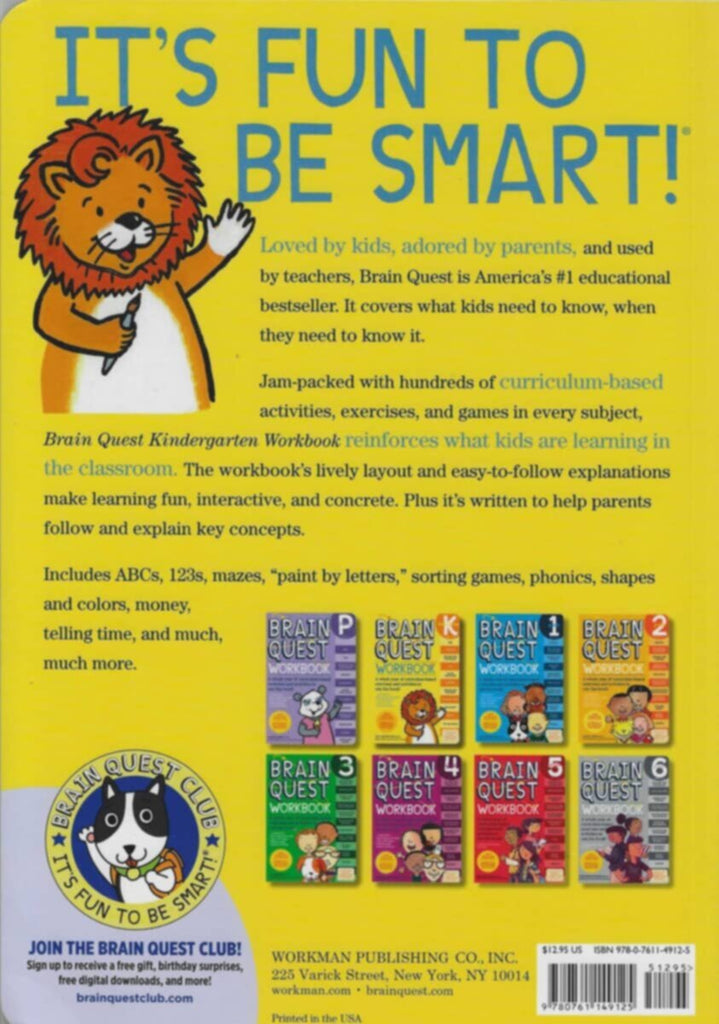 The ultimate kindergarten workbook, with hundreds of curriculum-based activities, exercises, and games in every subject! It’s fun to be smart! Loved by kids, teacher approved, and parent trusted, Brain Quest Kindergarten Workbook reviews and reinforces what kids are learning in the classroom in an instantly engaging, entertaining way. Each page is jam packed with hands-on activities and games covering ABCs, phonics, spelling and vocabulary, time and money, science, and much, much more—with friendly illustrations throughout. Aligned with Common Core State Standards and expertly vetted by award-winning teachers, this workbook is designed to appeal to kids’ natural curiosity, with interactive layouts and easy-to-follow explanations that take the intimidation out of learning. Plus, it’s written to help parents follow along and explain key concepts for homework help! With colorful stickers, a fold-out poster, award certificate, and Brain Quest Mini Decks in the back.