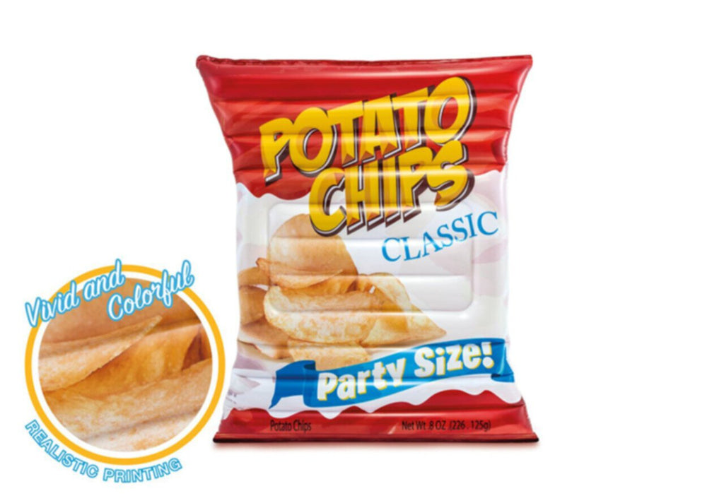 â—† The Intex Potato Chips Float has realistic graphics of a potato chip bag. Great for lounging in the pool with friends.