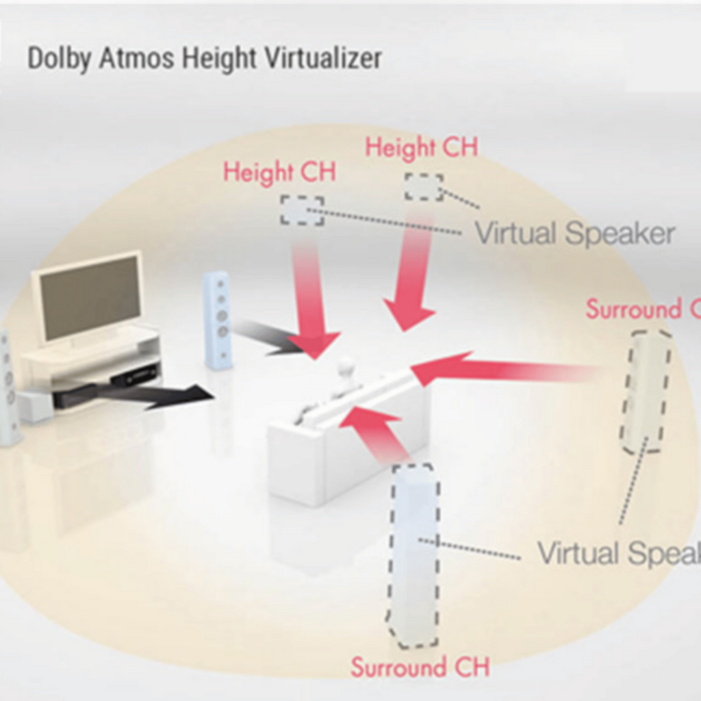 Creating a virtual surround and height effect from traditional speaker layouts without employing additional surround or height speakers.