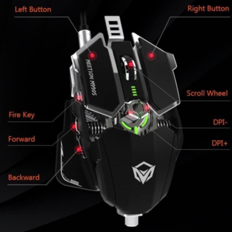 Transformer Gaming Style. the mechanical wings are designed with sci-fi armored wheels, like a sci-fi chariot that conquers the world. Symmetrical design, ergonomic, comfortable, and firm grip. 4000dpi high-resolution optical sensor, the resolution can be changed by driver software. Backlight and additional keys allow you to enjoy the convenience of control in any game. Gaming sensors work on any surface. The DPI change button lets you adjust the speed of mouse movement, and a color indicator reminds you which settings are currently in use. The buttons on the left are designed to help you fast forward or rewind. Better ergonomic design and surface treatment can satisfy players' pursuit of hand feel and performance, greatly improve operating efficiency and ensure longer service life.