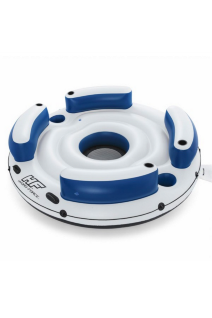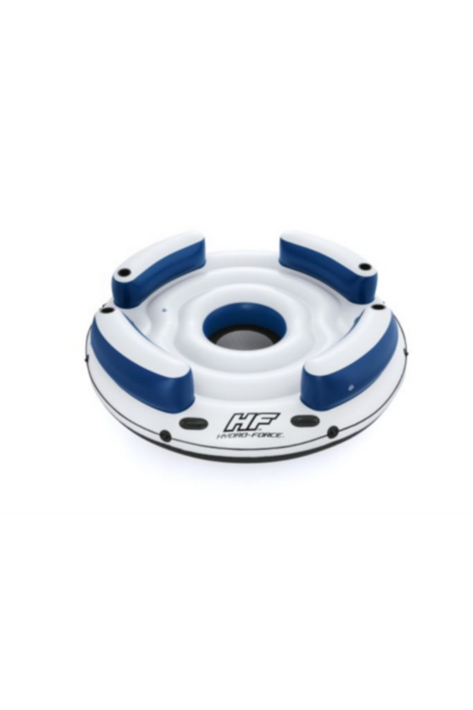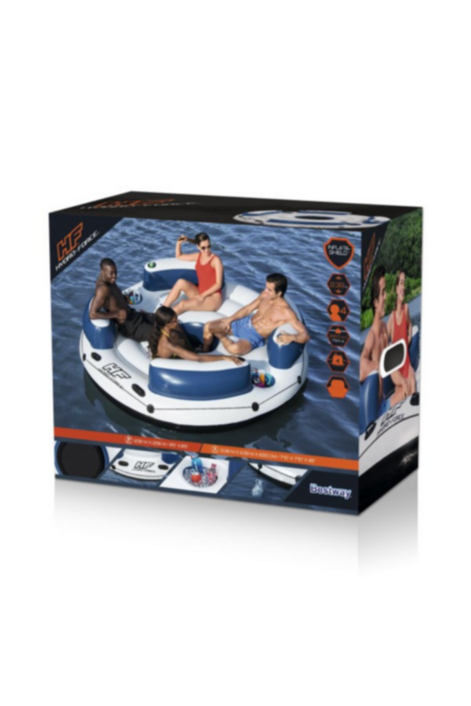 The Hydro-Force™ Lazy Dayz™ Inflatable Party Island brings the fun to the water for you and 3 friends or family members. The Lazy Dayz Island is made with Inflata-Shield™ material to prevent damage. This thicker material resists puncture, limits stretching and enhances grip. It also features 4 cup holders and 2 built-in storage compartments, so each person has a convenient place for their favorite drinks and snacks. With 4 extra-wide backrests and plenty of room to sprawl out, this island is as comfortable as it gets. The mesh opening in the center is perfect for when you want to dip your toes in the water. Heavy-duty handles allow you to hang on and help you get in and out of the float with ease. A grab rope wraps around the entire float, providing extra safety and ease when docking, or lets you latch multiple islands together to keep your friends near as you drift down the river or on the lake. Your day on the water with your friends or family wouldn’t be complete without the Hydro-Force Lazy Dayz Inflatable Party Island to lay back and relax on