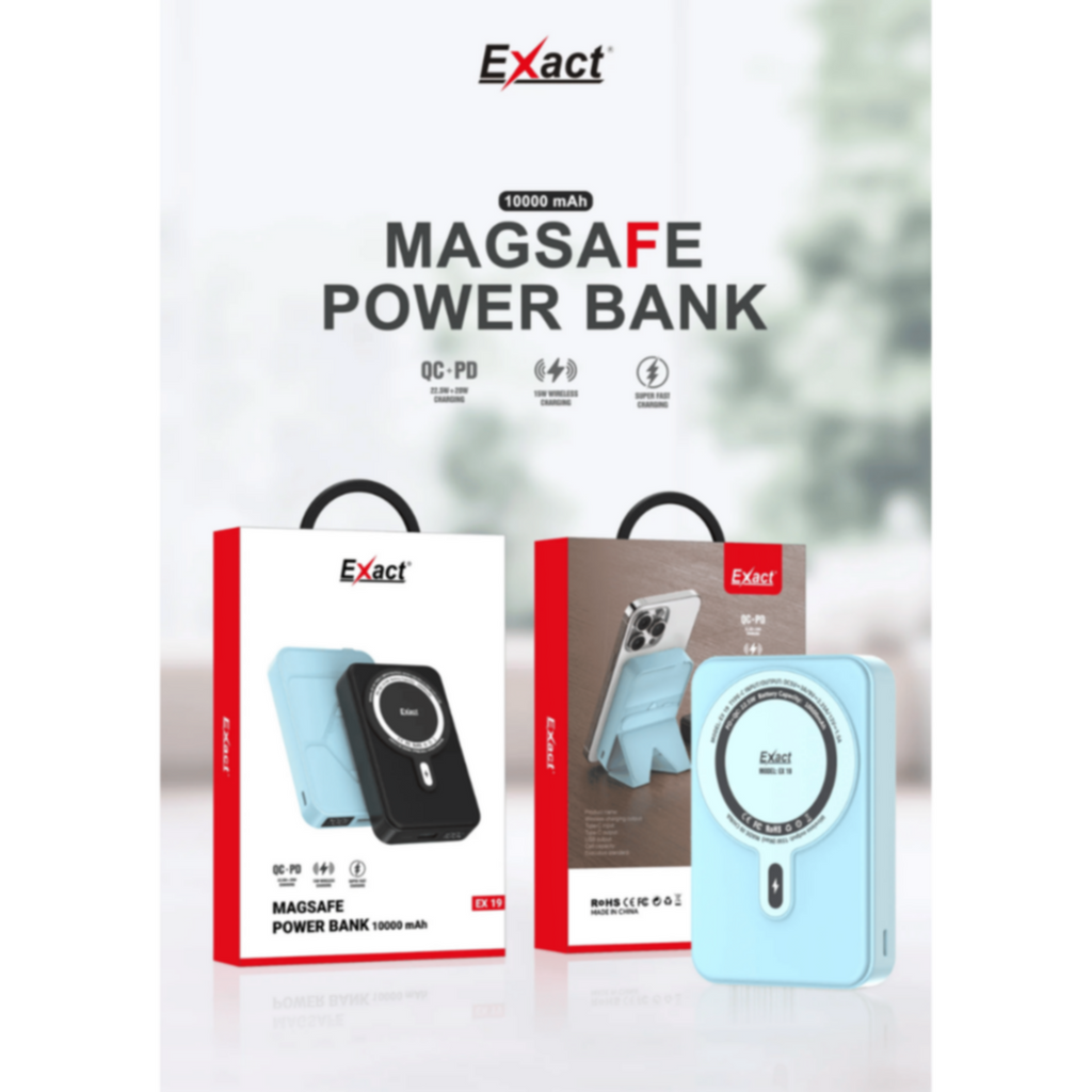 â—† Introducing the Exact MagSafe Power Bank 10000mAh , your ultimate solution for reliable, high-capacity charging on the go. This sleek, black power bank boasts a substantial 10000mAh capacity, ensuring your devices stay powered throughout the day, whether you're at work, traveling, or enjoying outdoor adventures.