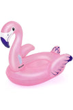 The Luxury Flamingo 1.53m x 1.43m is a giant inflatable ride-on with personality and pizzazz. This giant rider has 5 feet of surface area for sitting, lounging and posing. The long flamingo neck is complete with firm handles for riding or carrying. This ride-on is constructed with 3 air chambers to make inflation and deflation easier and help with buoyancy on the water. The purple glitter printed highlights on this flamingo round out the appealing features of this perfectly pink float.