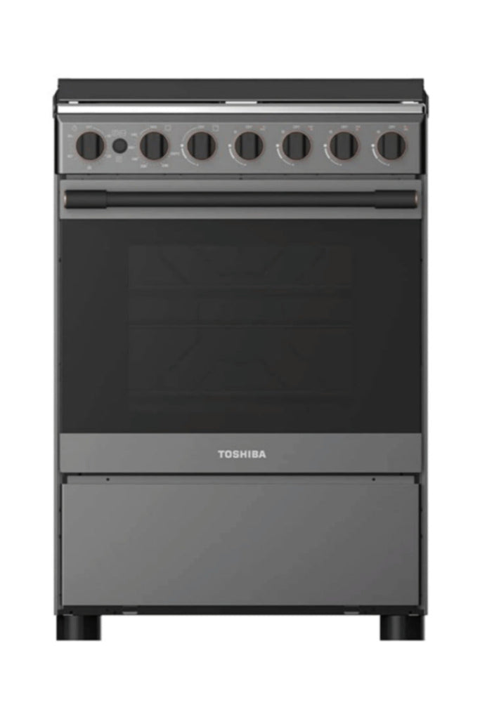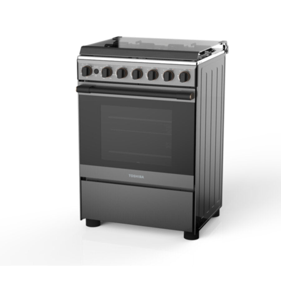 Toshiba 90x 60 Gas Cooker has timeless aesthetics that combine a stylish matte-gray anti-fingerprint finish with rose-gold embellishments for a smooth and exquisite look.