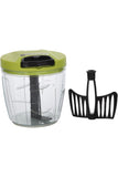 â—† 2-in-1 manual pull chopper with a 1000 ML PET container, a 5-tier stainless steel blade and a paddle attachment for quick and efficient chopping and whisking.