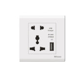 MILANO | 16A Universal Socket(2Pin+3Pin) With 2.1A U-White | 210100300317