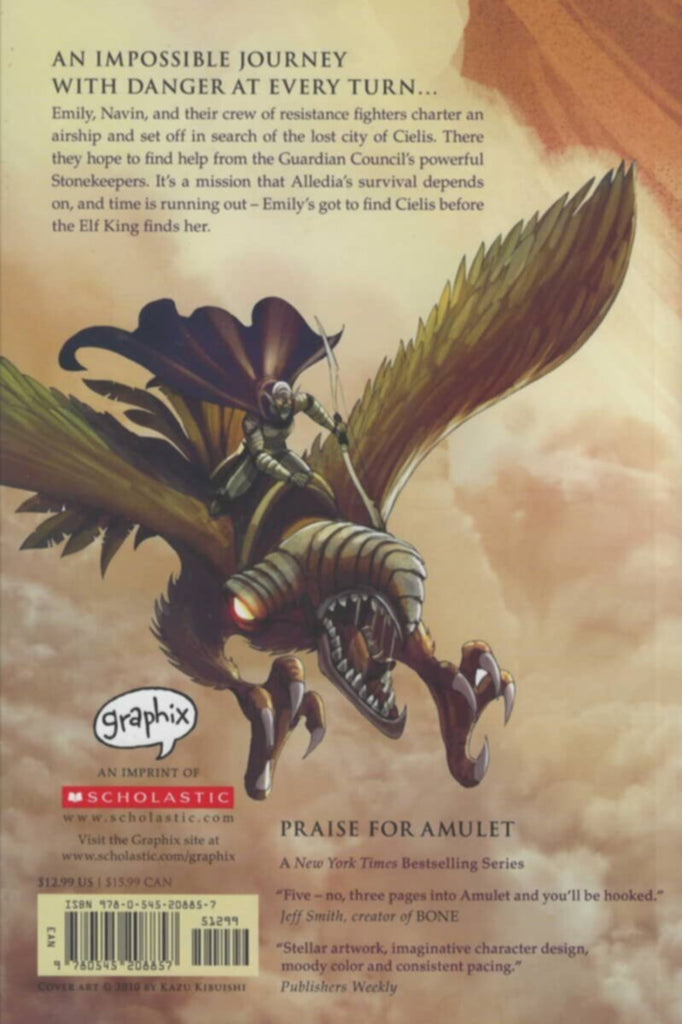 Kazu Kibuishi's enchanting series about two ordinary children on a life or-death mission continues! In the third installment of the thrilling Amulet series, Emily, Navin, and their crew of resistance fighters charter an airship and set off in search of the lost city of Cielis, which is believed to be located on an island high above the clouds. The mysterious Leon Redbeard is their guide, and there's a surprising new addition to the crew: the Elf King's son, Trellis. But is he ally or enemy? And will Emily ever be able to trust the voice of the Amulet?