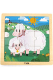 • A classic wooden puzzle of 9 elements in a wooden frame will help the baby develop hand motor skills, hand eye coordination, thinking and logic. It will also introduce him to the world of animals.